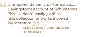 Reviews: Heart Shadow by Bruce Levingston The written word has always played an important role in the creation of works of music, from the ancient writings of Plato, Aristotle and Sophocles, to Gogol, Baudelaire and Tolstoy, through modern writers and poets such as Frost, Eliot, Joyce, and Mann. The three works presented on this album were each inspired by a work of literature. Rather than depicting actual characters, each piece presents a state of mind and soul, a distilled essence of the feelings and emotions found in the original sources. The Schumann is, of course, one of the masterpieces of the piano repertoire; it's depth and beauty endless. It's inspiration came from the Romantic work of E.T. A. Hoffman. The Bielawa and Wuorinen works, both written by two of today's most distinguished and important composers, were inspired by works of Rainer Maria Rilke and Salman Rushdie. These three works, like their creators and muses, could not be more different in compositional style and techniques. Yet, for all of their differences, outwardly as well as inwardly, they seem to share a spiritual unity. Perhaps the basic humanity that is central to each piece somehow joins them musically and artistically. In any case, their beauty, vision and eloquence speak for themselves. Reviews: In 2006, Orange Mountain Music released Bruce Levingston's CD "Portraits" featuring the world premiere recording of Philip Glass's A Musical Portrait of Chuck Close originally commissioned by Premiere Commission, Inc. The recording, which includes Glass's musical forebears Messiaen, Ravel and Satie, received international critical acclaim.