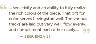 Portraits by Bruce LevingstonPREFACE The idea for A Musical Portrait of Chuck Close occurred to me just before I played a concert in The Rockefeller University's Caspary Hall. Outside the hall's foyer hangs one of artist Chuck Close's iconic renderings of Philip Glass. As I looked at it, I kept thinking about how Chopin and Liszt had been drawn and painted by the great artists of their day such as Delacroix and Ingres and also how many of the Romantic composers had in turn brilliantly portrayed their friends and contemporaries through their music. I thought, "Glass has to compose a portrait of Close." About a month later, a fortuitous meeting occurred. I met both Chuck Close and Philip Glass at a reception in New York. I immediately told Glass about seeing his portrait at the hall and my idea for a portrait of Close. He seemed genuinely moved and immediately accepted the project. The printed score of A Musical Portrait of Chuck Close arrived electronically in September 2004. I'll never forget the thrill of taking each page off the printer and running to the piano to see what the piece would feel like under my fingers. Each passage brought new and wondrous sounds and ideas. On April 25, 2005, I premiered the work at Lincoln Center's Alice Tully Hall in New York City. It was a memorable evening that celebrated not only great music and art, but also great friendships, and the important and lasting influences they have on the creative process. When I set out to create a disc of music that would complement the new Glass work, I sought pieces that shared not only representational qualities, but also certain communicative and emotional characteristics. The Messiaen, Ravel and Satie pieces all possess these expressive traits. While artistically quite unique, each of these works nonetheless resonates with the other. They share a kinship with the Glass work, not only in their musical and historical ties, but also in the power and subtlety of their expression. - Bruce Levingston PHILIP GLASS A Musical Portrait of Chuck Close Philip Glass is one of the most important artists of our time. He has composed for dance, film, opera, orchestra, and theater. His 1976 operatic collaboration with Robert Wilson, Einstein on the Beach, is considered a landmark in twentieth century music-theater. Born on January 31, 1937, Glass graduated from The University of Chicago at age 19 with degrees in mathematics and philosophy and then studied at The Juilliard School with Vincent Persichetti and in Paris with Nadia Boulanger. While in Paris, he was hired to transcribe the music of Ravi Shankar and discovered the techniques of Indian music. After researching music in North Africa, India and the Himalayas, Glass began applying Eastern techniques to his own work. This eventually led to a musical breakthrough using a style that came to be called Minimalism. Although Glass never claims to have invented Minimalism and maintains the form only applies to his earlier compositions, his is the name most associated with the movement. Glass has said of that era and the movement: "It was in the air. It was bound to happen." Certainly his earliest music lacks the traditional sense of narrative progression typically associated with classical music. There is also a sense of harmonic repetition and lack of thematic development linked to Minimalism. However, in recent years Glass's works have evolved in both musical complexity and structure that can now hardly be called minimal. While certain principles remain constant such as maintaining a sparse number of harmonic and developmental changes, Glass utilizes greater rhythmic and thematic variations to evoke deeper fields of sound and emotion. Chuck Close and Philip Glass This evolved style can be heard in Glass's A Musical Portrait of Chuck Close. Composed as a diptych in two harmonically related but distinctly different movements, this work is a spiritual reflection of Chuck Close, and a tribute to the friendship between two of the most influential artists of their generation. Close and Glass first became friends in the late 1960s when both worked as assistants to the sculptor Richard Serra. Close was then taking photographs and painting ../images of his friends. He specifically did not want to paint "famous" people although many of his subjects, including Glass, Serra, Roy Lichtenstein, Alex Katz and Robert Rauschenberg, did ironically become famous in their own right. Close called his portraits "heads" to emphasize they were exercises in "form not biography." Unlike traditional portraits, Close's "heads" gave every aspect of an image equal value and importance. The most best known of these "heads" is undoubtedly that of Philip Glass. "Poor Phil," Close said in a 2005 interview with Charles McGrath of The New York Times. "I'm still using that same old photograph. Every time I go back I see something different. It's like going back to a magic well." Close said what appealed to him about that early photograph were Glass's "curly, dendritic locks" which reminded him of Medusa. The portraits are, Close admits, "a kind of accidental record of a friendship." Glass's A Musical Portrait of Chuck Close, while not depictive in a literal sense, offers yet another record of that friendship. "What the musical portrait and Mr. Close's paintings have in common," McGrath wrote, "is a method and a philosophy -a kind of minimalism, though that's not a term that either man cares much for. Both artists work with very small elements, "bricks" Mr. Close sometimes calls them, discrete bits of information that are repeated and carefully varied to create a whole." "If you look at some of Chuck's paintings, they're modules that are put together and shaded with different values," Glass said. "And I've used that idea with modular music also. But there's another aspect of it which is perhaps more important, which is that his work is really about creating art out of an exhaustive and detailed process, so that the en